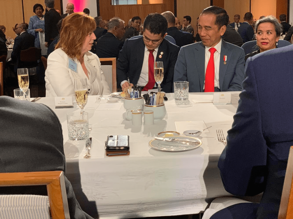 Monash Vice-Chancellor and President, Professor Margaret Gardner whose initiative this is, was in Canberra for the state banquet and able to brief President Jokowi directly (below).